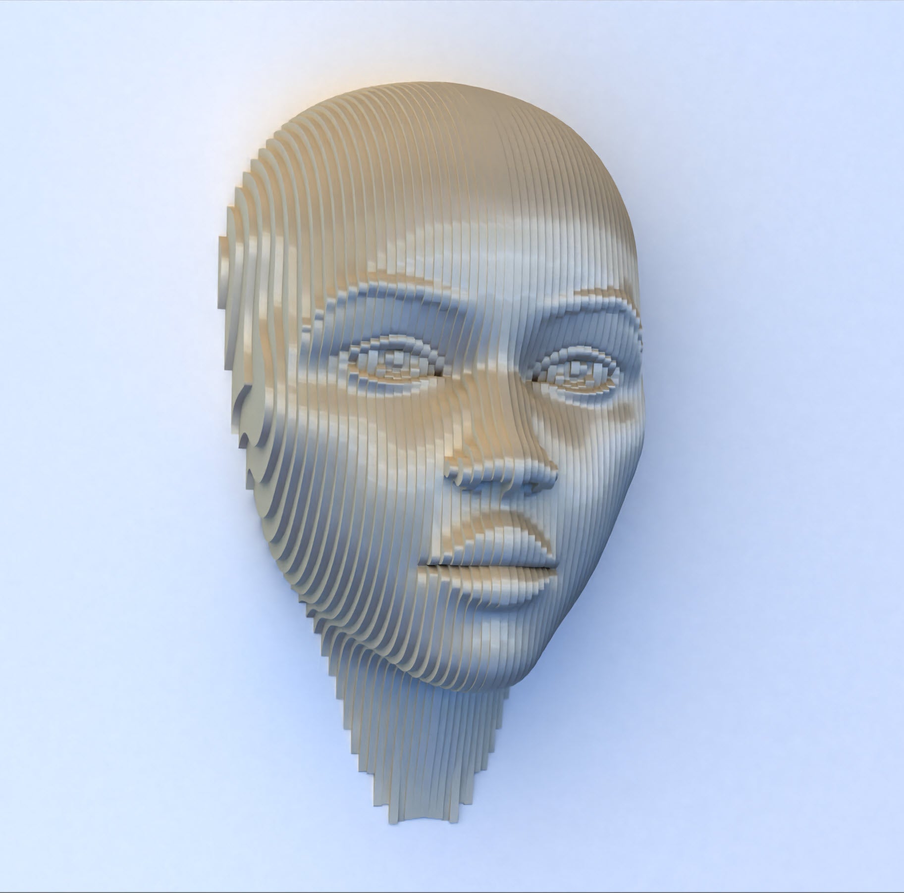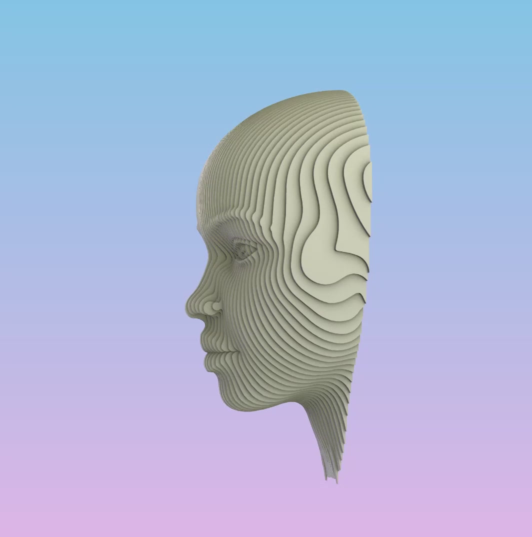 Capturing an idealized vision of facial beauty through art deco aesthetics, this sculptural piece celebrates symmetry and refined features. Standing 12 inches tall 6.5" wide and 4.5" deep the three-dimensional print transitions seamlessly from tabletop display to wall-mounted installation with included hardware. Choose between lustrous metallic silver or warm metallic bronze finishes.