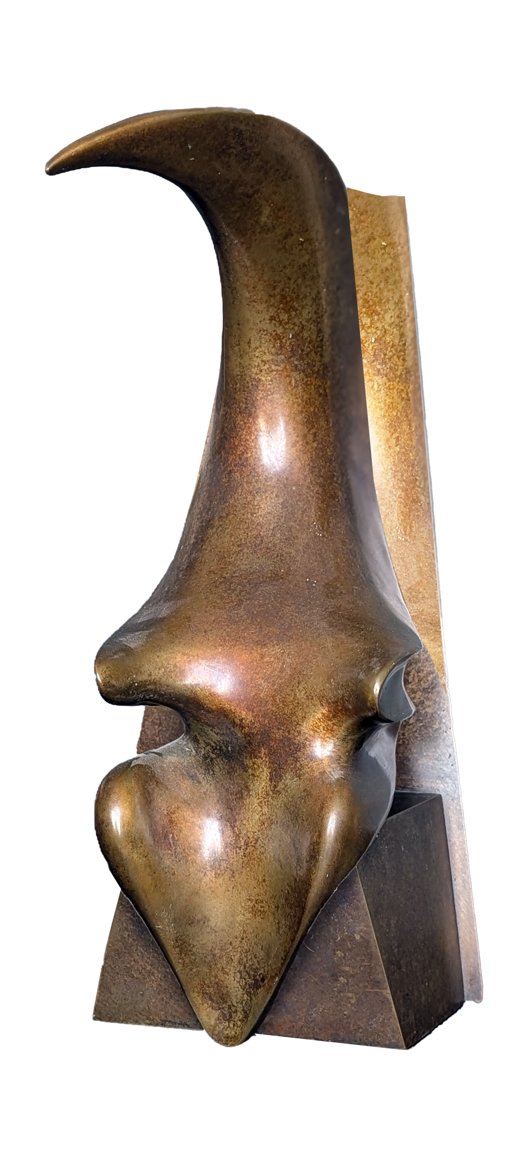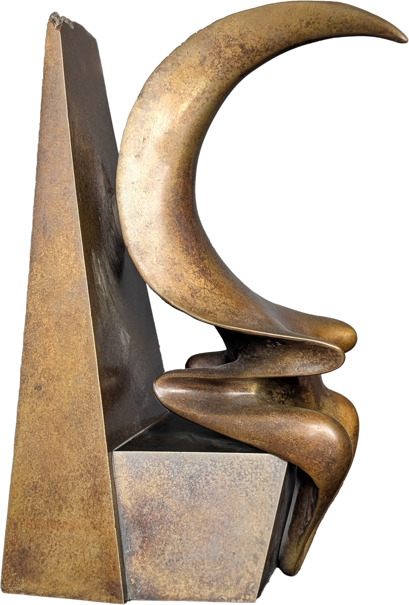 A one-of-a-kind bronze sculpture born from the artist's experimental mid-80s technique: stretching lycra over copper wire, dipping in foundry wax, hand-tooling with flame, then casting. No molds, no repeats—just raw creative alchemy frozen in bronze. Each piece tells the story of its own making. Dimensions are 16" high x 7.5" long x 9" deep.